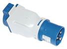 Adapter op spanning 230V. Uitvoering met ingang CEE 3P/16A naar 1 mono-stopcontact (2p+t 16A 230V) Adapter is vervaardigd uit polyamide en heeft volgende afmetingen 66x133x74mm (hxbxd)